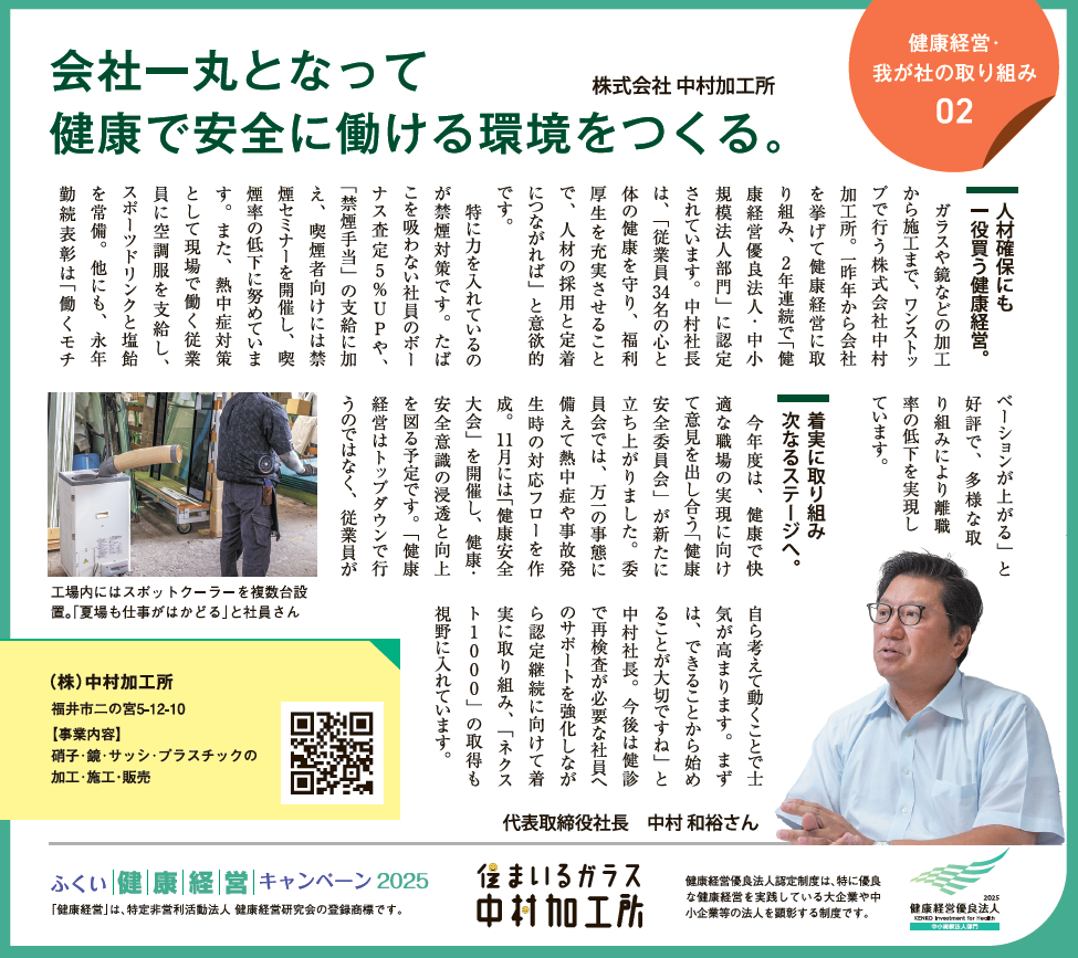 福井新聞の「ふくい健康経営キャンペーン2025」に掲載されました✨